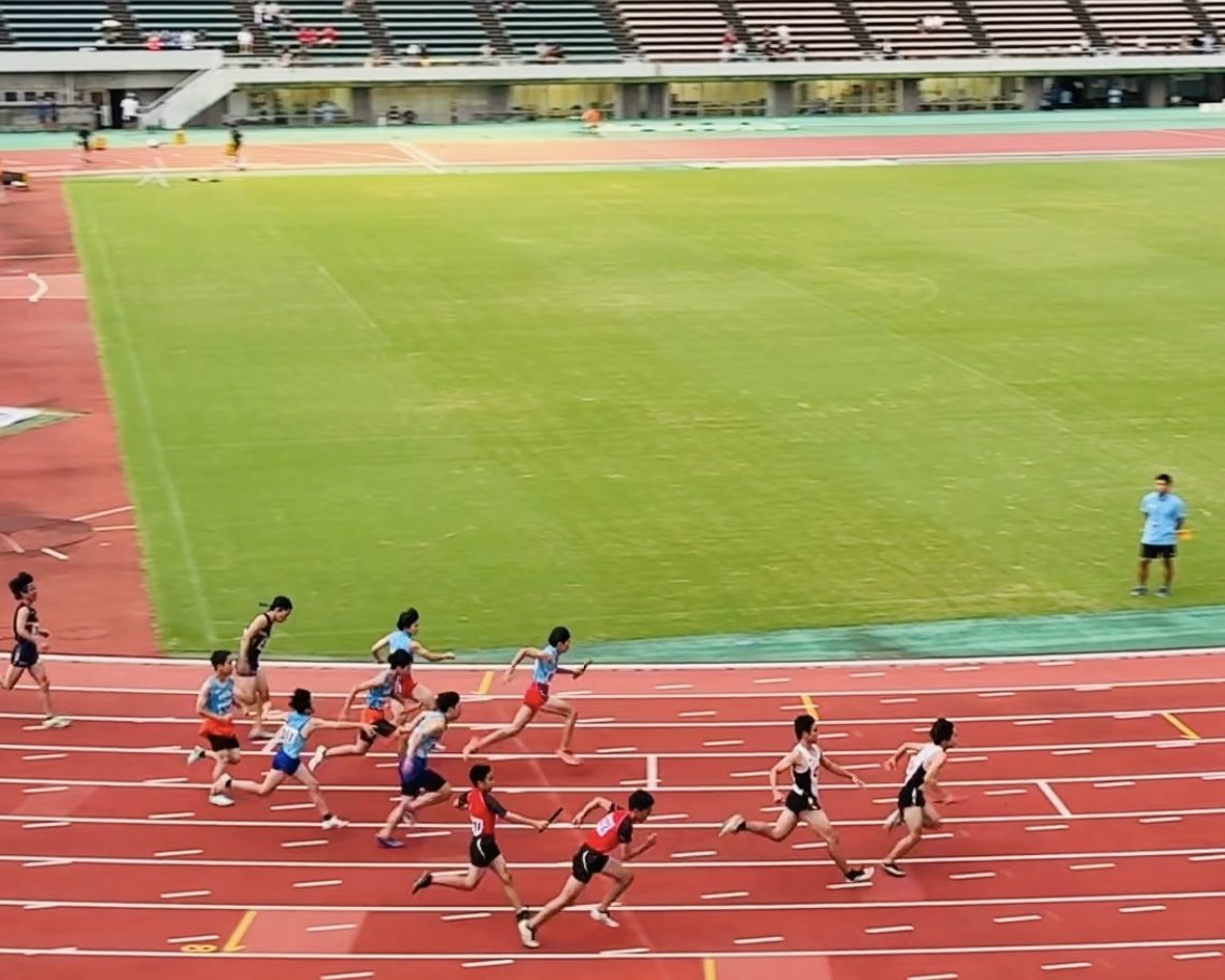 400mでは1年生ながら決勝に進出し8位。100mは自己ベストを出しましたが、追い風参考記録のため公認とはならず予選敗退となりました。さらに学校としてはリレーにも出場し、タフな2日間を戦い抜きました。